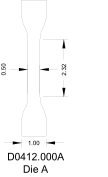 Model No. DIE.D0412.0001 Dumbbell Dies for Geometry “A”. 2.32” Gage length, 0.500 gage width, 1.00” Dumbbell grip width, 5.50” Total Length |