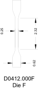 Model No. DIE.D0412.0006 Dumbbell Dies for Geometry “F” 2.32” Gage length, 0.25” gage width, 0.62” Dumbbell grip width, 5.00” Total Length |