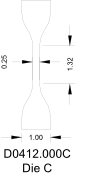 Model No. DIE.D0412.0003 Dumbbell Dies for Geometry “C” 1.31” Gage length, 0.25” gage width, 1.00” Dumbbell grip width, 4.50” Total Length |