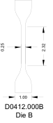 Model No. DIE.D0412.0002 Dumbbell Dies for geometry “B”. 2.32” Gage length, 0.25” gage width, 1.00” Dumbbell grip width, 5.50” Total Length |
